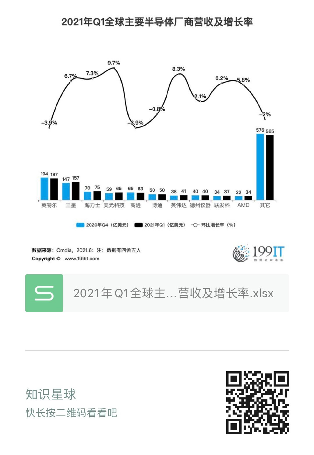 - 2021年Q1全球主要半导体厂商营收及增长率(附原数据表)