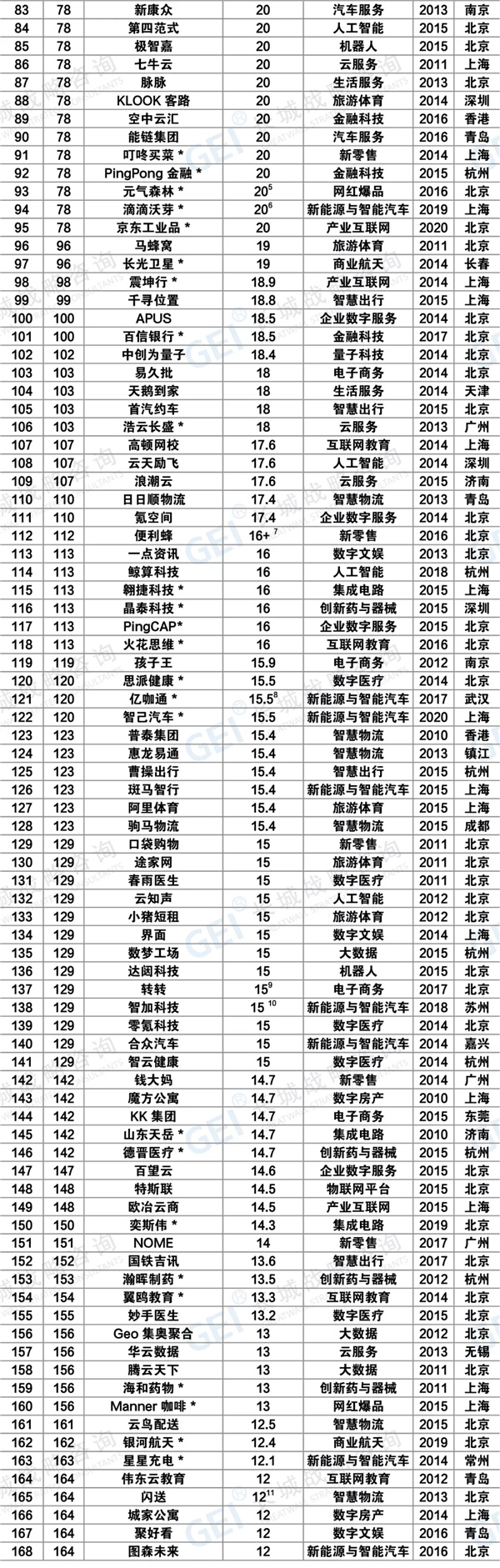 (4)符合条件(1)(2)(3),且企业估值超过(含)10亿美元的称为独角兽企业;