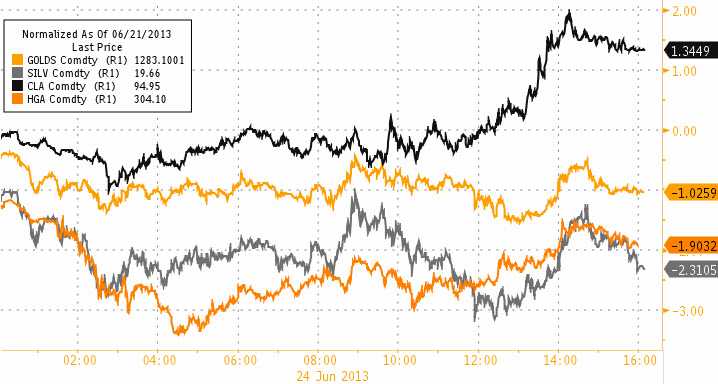 高盛周一表示,黄金价格的短期前景依然不确定,预计金价将进一步下跌,下调2013年底金价预期至1300美元,原预期为1435美元。同一日,高盛还下调了中国经济增长预期。此外,瑞信认为投资者应该停止看多黄金,并称黄金很有可能跌至QE推出前的水平。