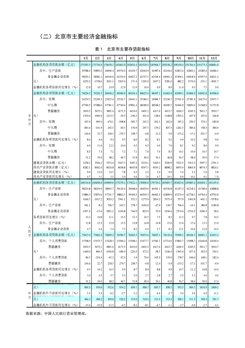 一是银行业整体稳健,存贷款保持平稳增长。 银行业机构资产总额达28.6万亿元,同比增长9.1%;人民币存款余额同比增长 10.2%,较上年同期高0.9个百分点;人民币贷款余额同比增长10.4%,其中近九 成新增贷款投向实体企业,非金融企业及机关团体人民币贷款余额同比增长 12.5%,较上年同期高1.3个百分点;重点领域信贷支持进一步加强,制造业中长 期贷款余额和普惠小微贷款余额同比分别增长58.9%和30.4%;减负让利实体经济 成效显著,企业贷款利率同比下降41个基点,普惠小微贷款利率同比下降96个基 点。