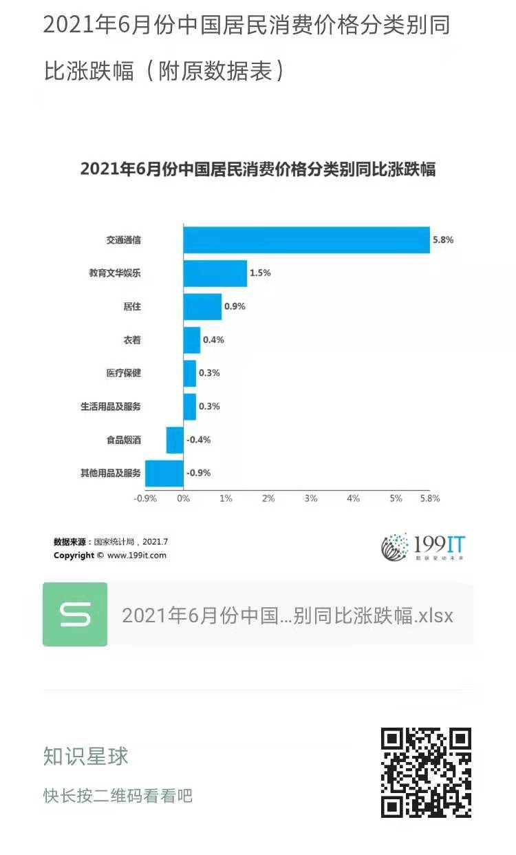 2021年6月份中国居民消费价格分类别同比涨跌幅(附原数据表) ​​​​