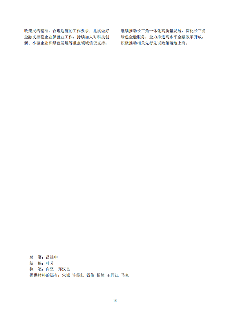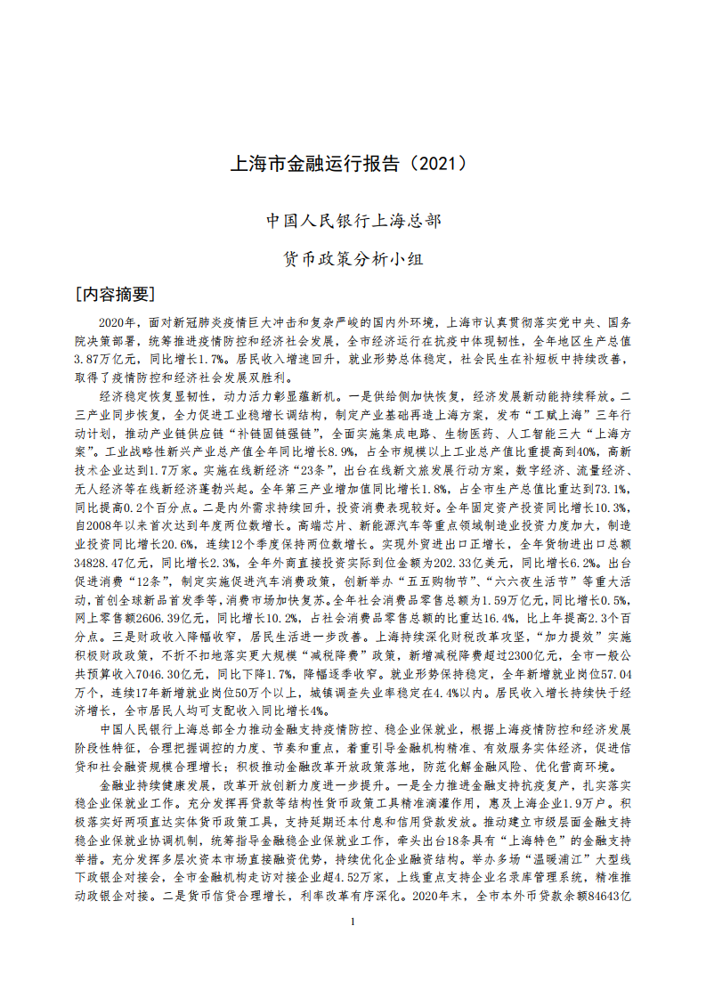 中国人民银行上海总部全力推动金融支持疫情防控、稳企业保就业,根据上 海疫情防控和经济发展阶段性特征,合理把握调控的力度、节奏和重点,着重引 导金融机构精准、有效服务实体经济,促进信贷和社会融资规模合理增长;积极 推动金融改革开放政策落地,防范化解金融风险、优化营商环境。