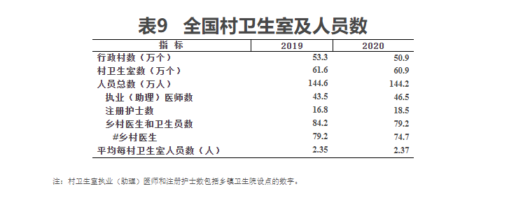 (一)农村卫生。2020年底,全国共有县级医院16804所、县级妇幼保健机构1887所、县级疾病预防控制中心2025所、县级卫生监督所1770所,四类县级卫生机构共有卫生人员336.4万人。