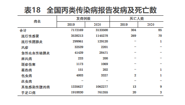 2020年,全国丙类传染病报告发病率为223.2/10万,死亡率为0.0061/10万。