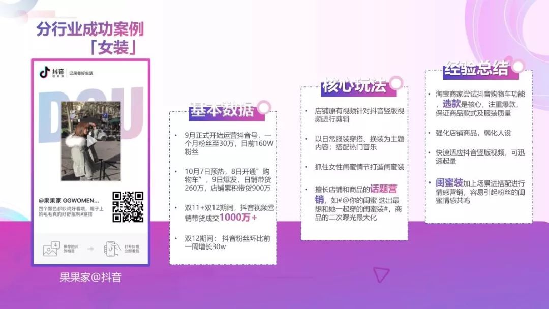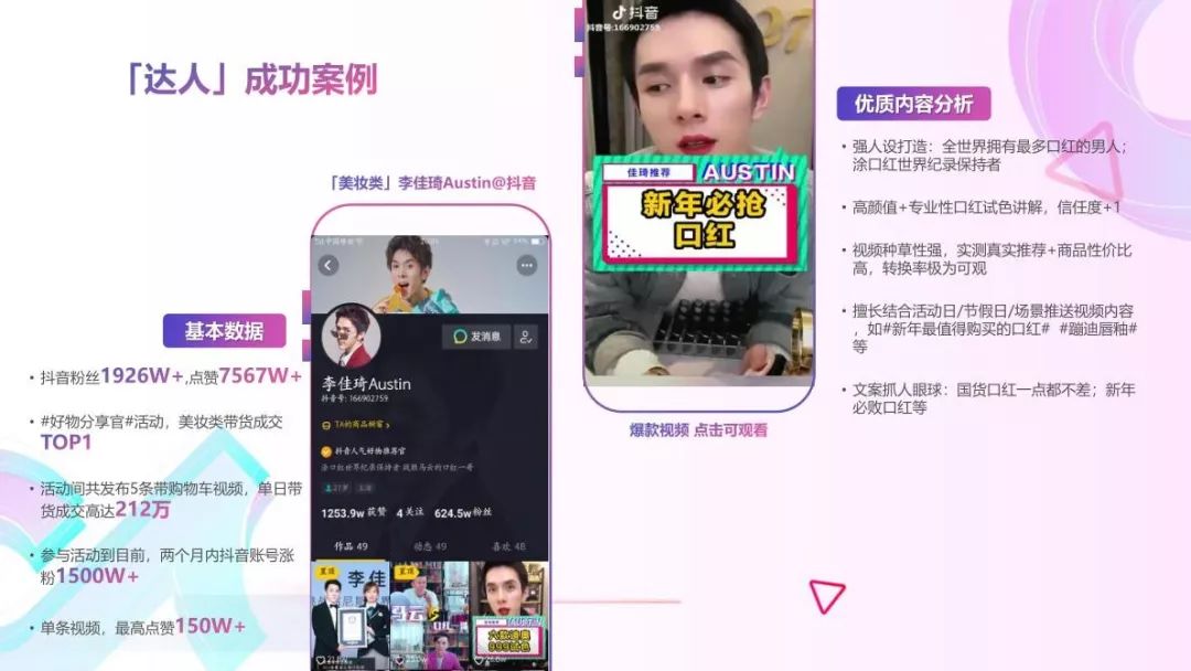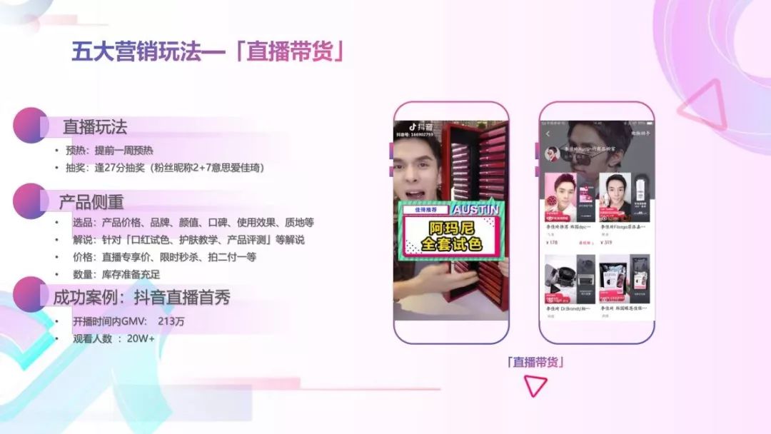 抖音购物车商家指导手册-带货研究 更多阅读:小葫芦大数据:2021 国庆假期直播带货排行榜单QuestMobile:2020五一假期消费洞察报告 本地生活引领消费复苏 直播带货成新增长热点QuestMobile:2021“她经济”洞察报告 女性用户规模达到5.47亿 女神消费崛起正当时!QuestMobile:2020 “618”电商洞察报告 线上零售新模式持续演化 电商+网红直播+卫视=?QuestMobile:2020中国互联网广告大报告(下篇) 媒介价值变迁 “渠道x内容-营销-购买”闭环形成 传统玩法已进ICUQuestMobile:2020美妆人群与品牌洞察报告 KOL带动国货品牌崛起 美妆龙头三强争霸隐现尼尔森网联:2020年3月广播主播红人榜TOP100QuestMobile:2020女性新消费趋势报告 女性用户成电商主力军 直播、社交和种草,哪个招式更灵光?QuestMobile:2019直播+X 洞察报告深度调研直播带货行业 防水墙发布《2020年短视频及直播带货调查》网易:1Q18营收同比增长3.9%,游戏业务同比下降18.4%星图数据:2020.11.11全网销售直播数据分析82%用户青睐流媒体直播,媒体发展「直播+」业态三大招2020快手电商生态报告企鹅智酷:2017中国网络视频直播行业趋势报告