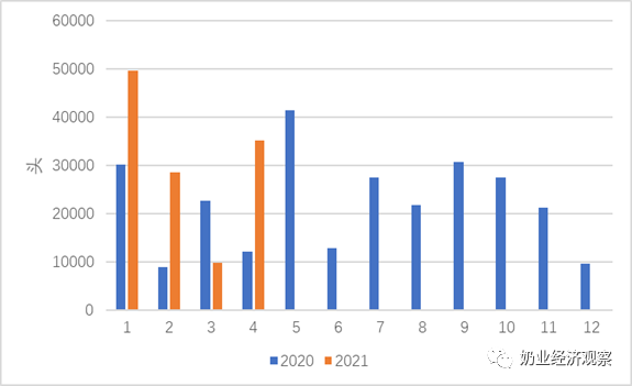 Figure 4‑1 中国活牛(月度)进口 2020-2021
