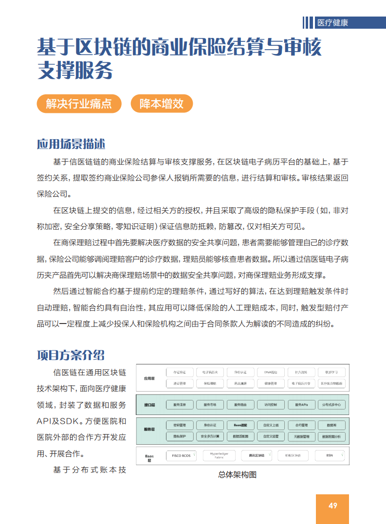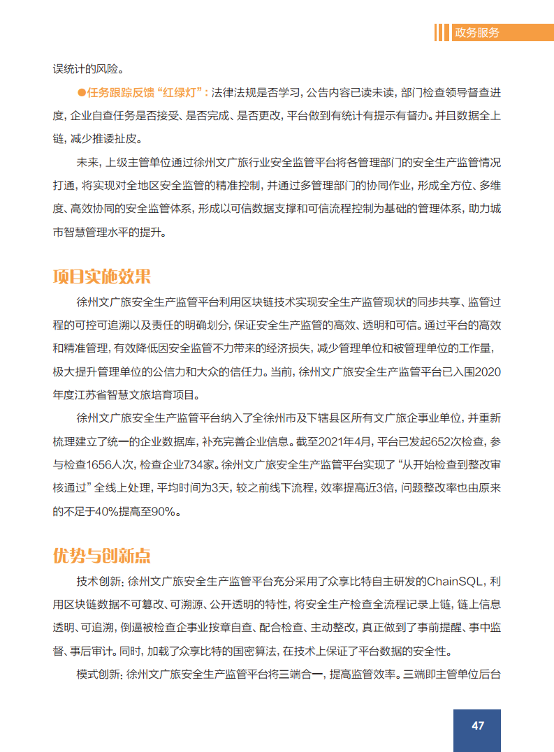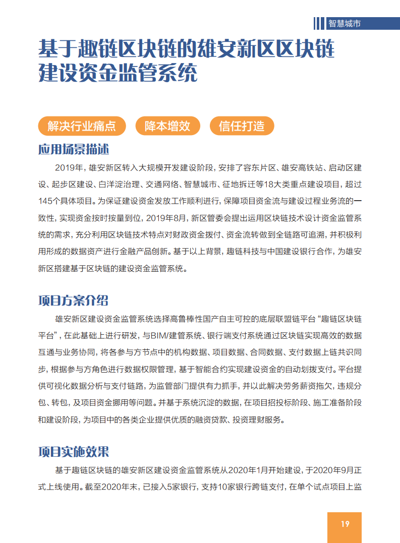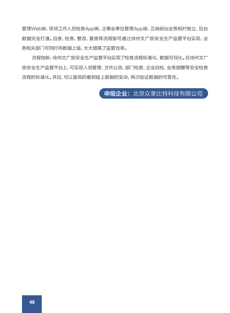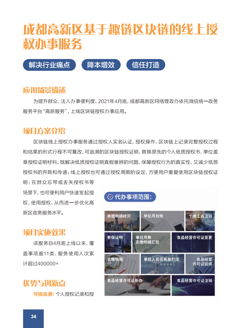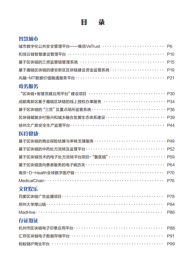 本案例集入选项目覆盖智慧城市、政务服务、医疗健康、文化娱乐、存证取证等公共服务领域;供应链管理、产品溯源、数据流通等实体经济领域;以及数字金融、数字资产交易等金融领域。希望通过案例集的汇编,推动案例集中的项目形成场景化示范带动效应,进一步促进区块链技术与相关产业的创新融合,支撑各行各业数字化转型和产业高质量发展。