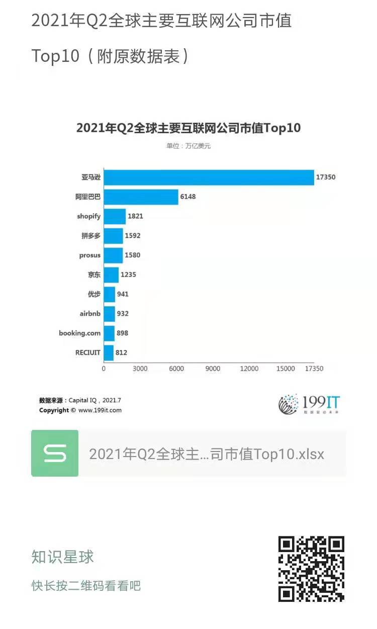 2021年Q2全球主要互联网公司市值Top10(附原数据表) ​​​​