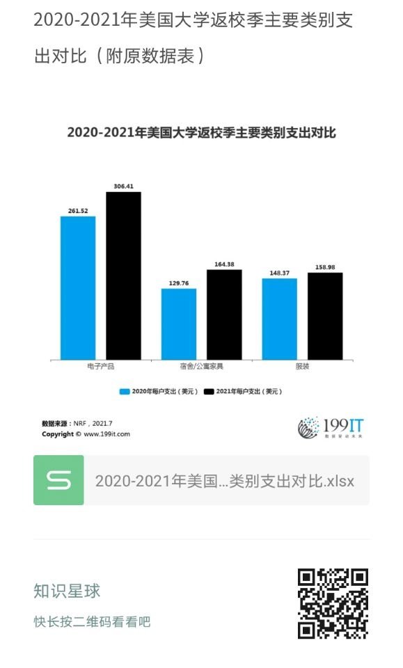 2020-2021年美国大学返校季主要类别支出对比(附原数据表) ​​​​