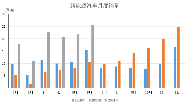 2021年1-6月,新能源汽车产销均超过120万辆,分别达到121.5万辆和120.6万辆,同比增长均为2.0倍。与2019年同期相比,产销同比分别增长94.4%和92.3%。