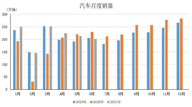 2021年6月汽车产销分别达到194.3万辆和201.5万辆,环比下降4.8%和5.3%,同比下降16.5%和12.4%。