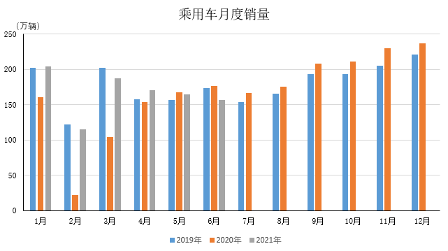 2021年1-6月,乘用车产销984.0万辆和1000.7万辆,同比增长26.8%和27.0%。与2019年同期相比,产销同比下降1.6%和1.4%。