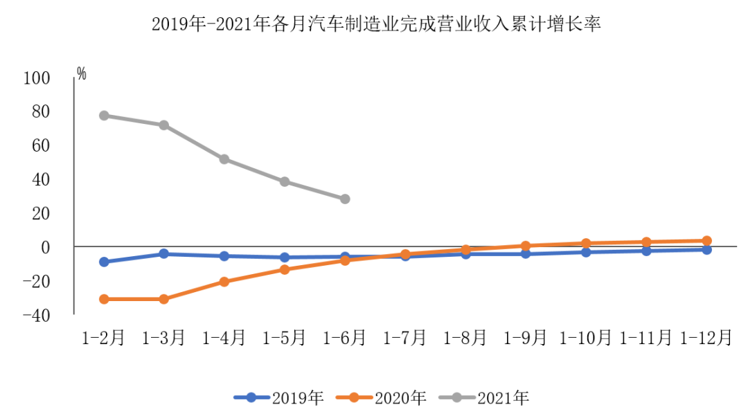 中汽协:2021年上半年汽车制造业营业收入超过4万亿元 据中国汽车工业协会整理的国家统计局公布的数据显示,2021年上半年,汽车制造业完成营业收入同比保持较快增长,增速较1-5月持续回落。 2021年上半年,汽车制造业完成营业收入42891.1亿元,同比增长28%,占规模以上工业企业营业收入总额的比重为7.2%。 更多阅读:中国汽车工业协会:2021年1-7月汽车制造业营业收入同比增长超过20%中国汽车工业协会:2021年前三季度汽车制造业营业收入完成61679亿元 同比增长11.3%中国汽车工业协会:2022年1-2月汽车制造业营业收入同比呈小幅增长中国汽车工业协会:2023年1-4月汽车制造业营业收入同比快速增长中汽协:2021年1-5月汽车商品进出口总额接近900亿美元中汽协:2021年1-11月中国汽车商品出口金额前十国情况简析中汽协:2022年1-2月汽车类零售额同比呈小幅增长中汽协:2020年12月前十位SUV品牌销量排名中汽协:2021年1-11月中国汽车整车进口前十国情况简析中汽协:2024年1-4月前十位MPV生产企业销售情况简析中汽协:2021年上半年前十位轿车品牌销量排名中国汽车工业协会:2022年1-5月前十家SUV生产企业销售情况简析中汽协: 2024年1-4月前十位轿车生产企业销售情况简析中汽协:2021年5月汽车行业运行监测快报中汽协:2021年上半年汽车制造业实现利润同比增长超过45%