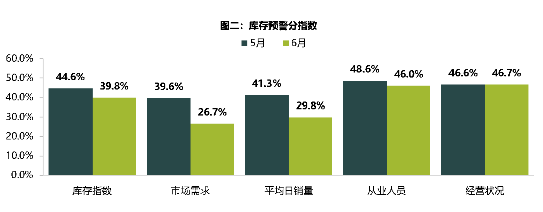 6月,车市进入淡季,芯片短缺对汽车产能和批发量有直接影响,不少厂家放缓生产节奏,提前进入高温休假,并放宽对经销商提车量的考核,经销商绝对库存水平进一步下降,为了冲击半年度目标,6月经销商也适度被动补库。另外,经销商热销车型紧缺,交付时间无法确定,导致消费者购车延后或取消订单,经销商经营利润有所下降。