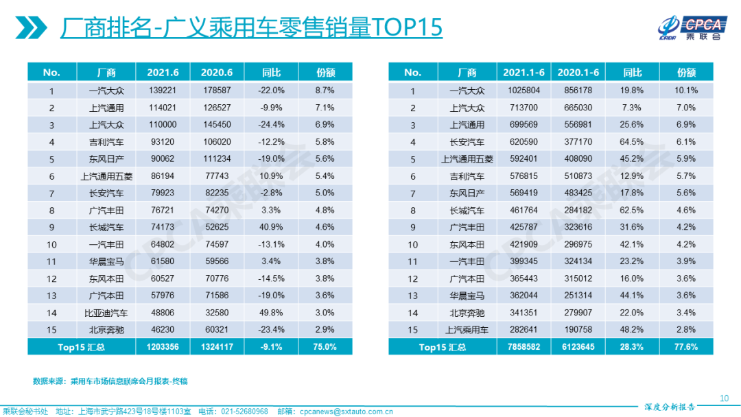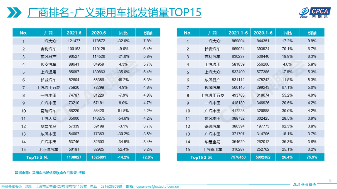 - 广义乘用车产销情况——2021 年 6 月及累计