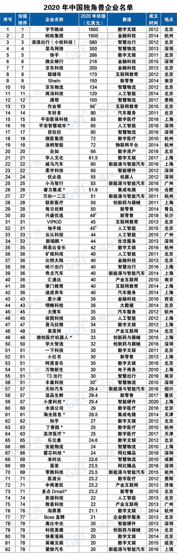 (4)符合条件(1)(2)(3),且企业估值超过(含)10亿美元的称为独角兽企业;