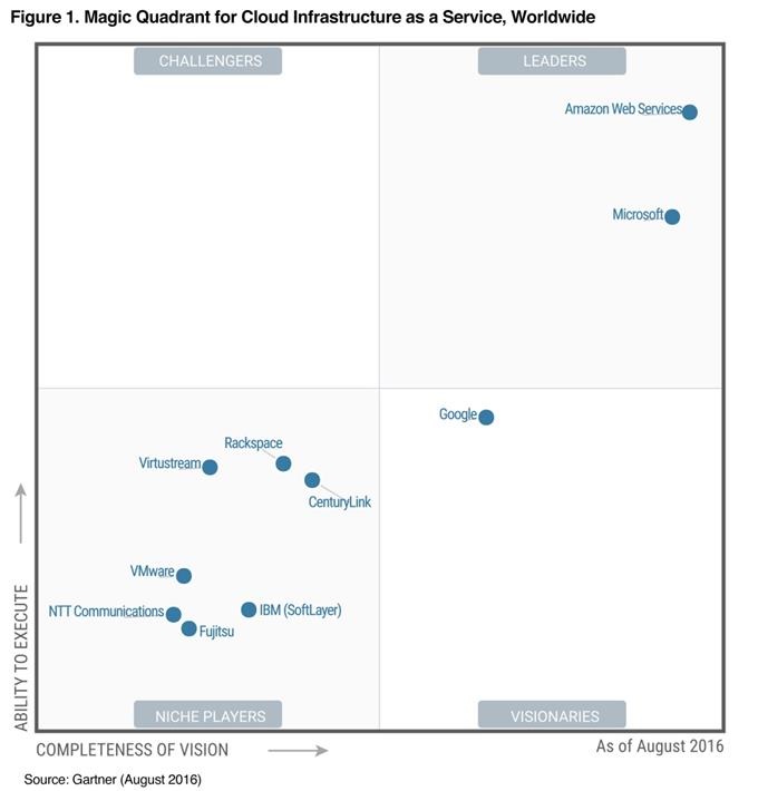 8. 2016 年,亚马逊云科技连续第 6 年排名领导者象限最高、最远的位置。微软在领导者象限继续追。