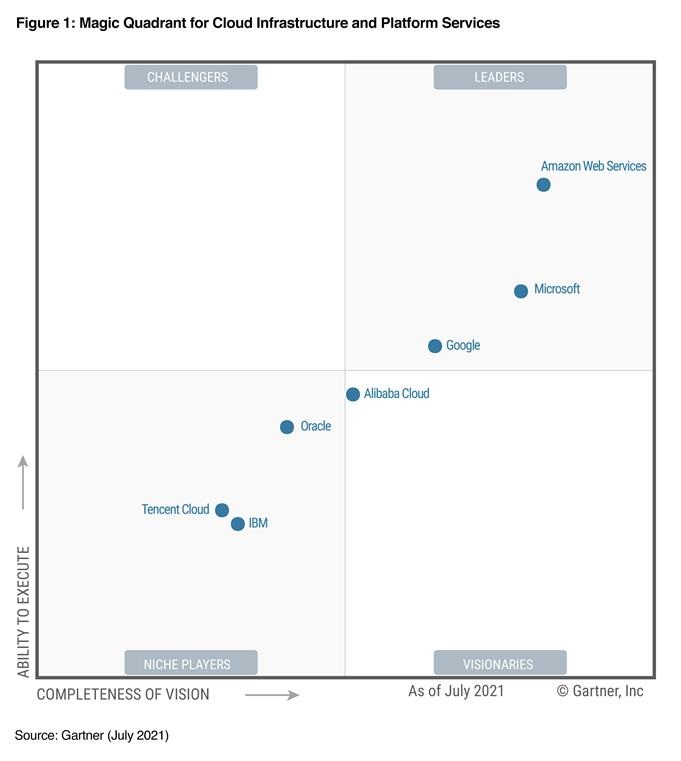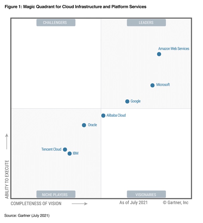 日前,在全球领先的研究与咨询公司 Gartner 最新发布《2021 年云基础设施和平台服务魔力象限》报告,亚马逊云科技(Amazon Web Services)毫无悬念地再次霸榜 Gartner 云计算魔力象限,即领导者象限图中最高、最远的位置。这是亚马逊云科技连续第 11 年在 Gartner 的该系列魔力象限报告中霸榜。