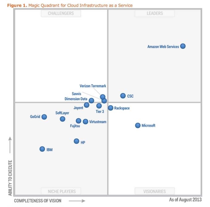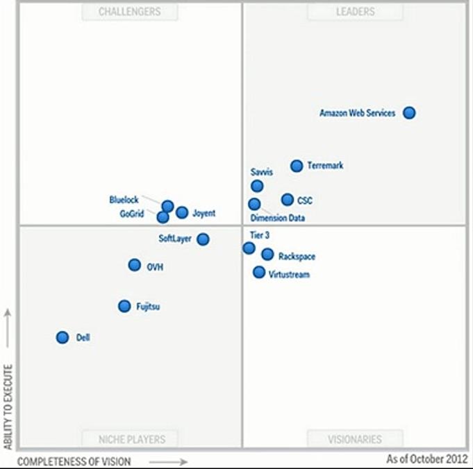 5. 2013 年是一个奇怪的年份,领导者象限只剩下亚马逊云科技和 CSC,而 CSC 被亚马逊云科技远远甩在身后,这是亚马逊云科技连续第 3 年排名领导者象限最高、最远的位置。