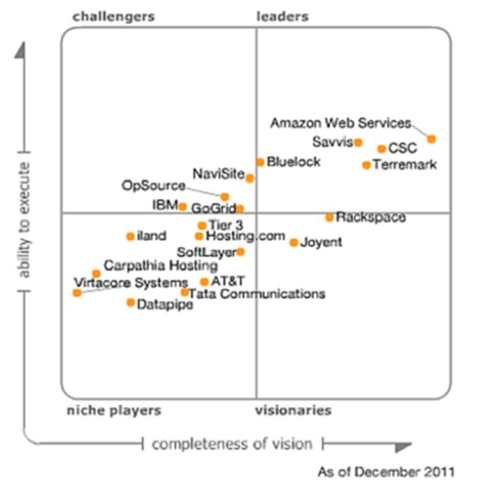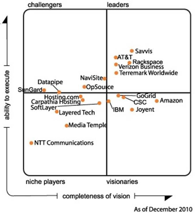 2. 2010 年的 Gartner 魔力象限,没有找到当时的全图,亚马逊仍然没有进入领导者象限。