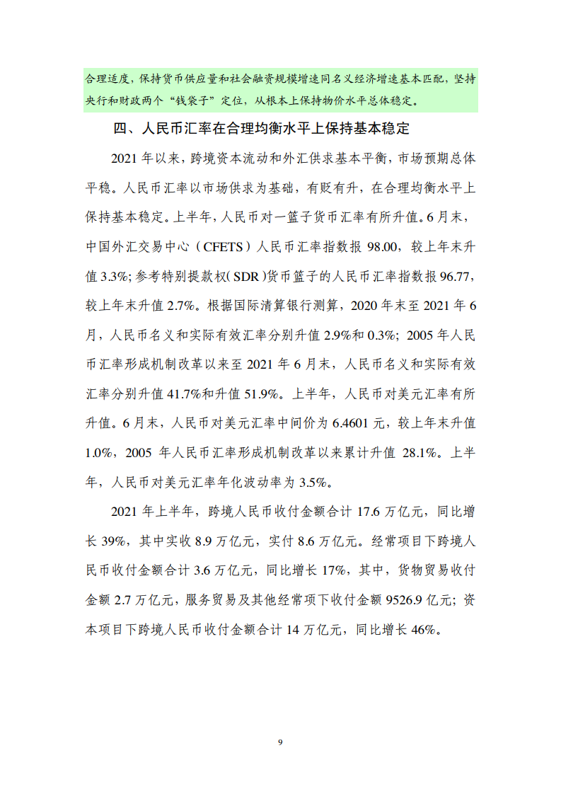 四是以我为主,把握好内部 均衡和外部均衡的平衡。深化汇率市场化改革,增强人民币汇率弹性, 加强预期管理,发挥汇率调节宏观经济和国际收支自动稳定器作用。