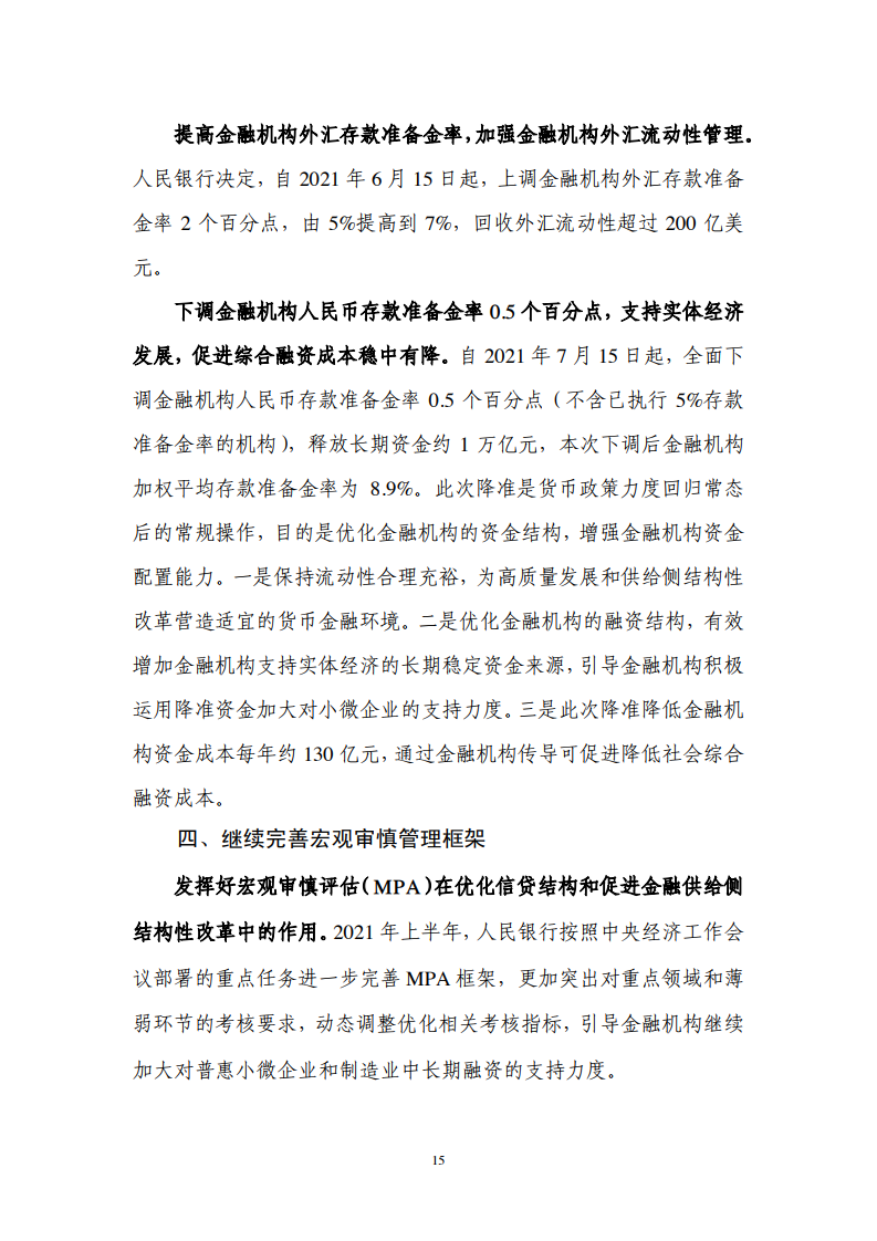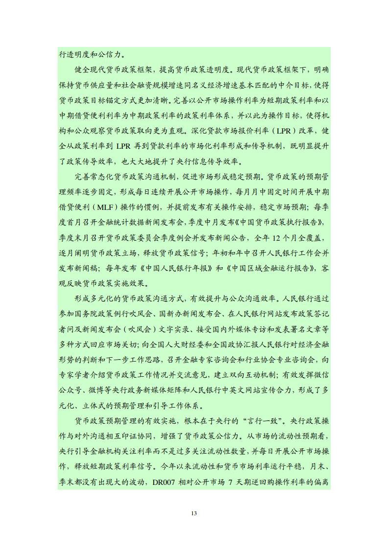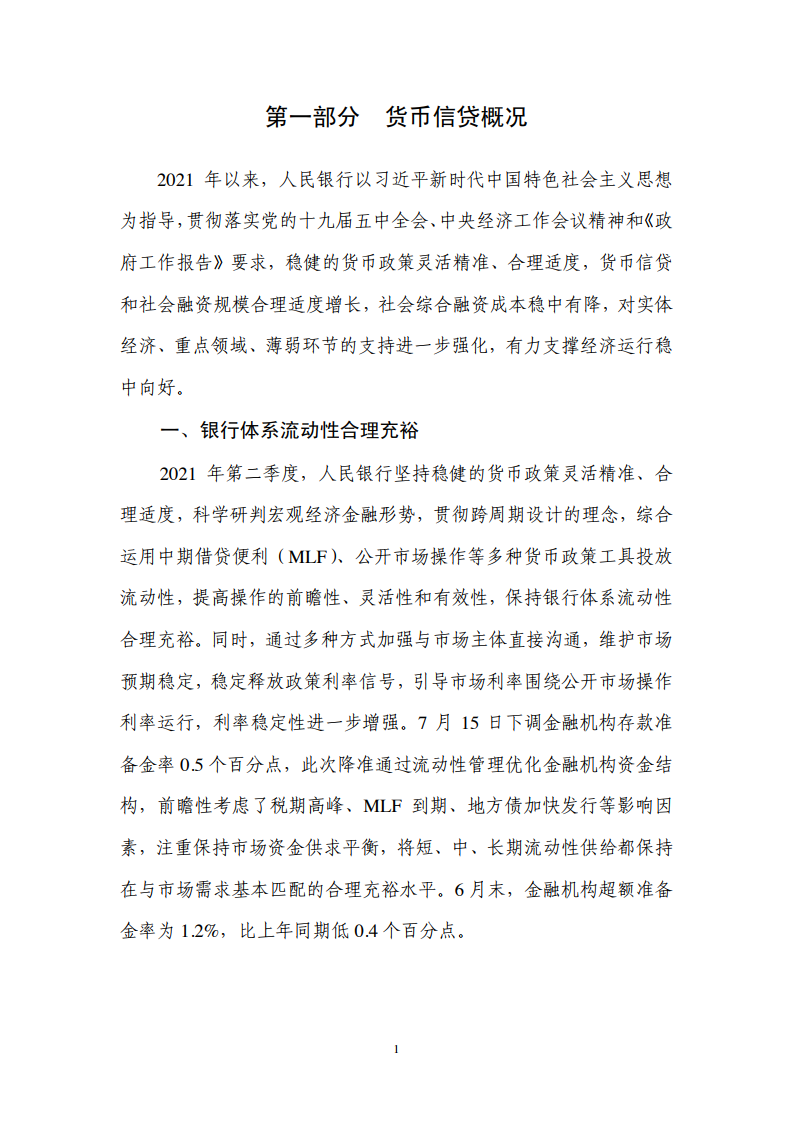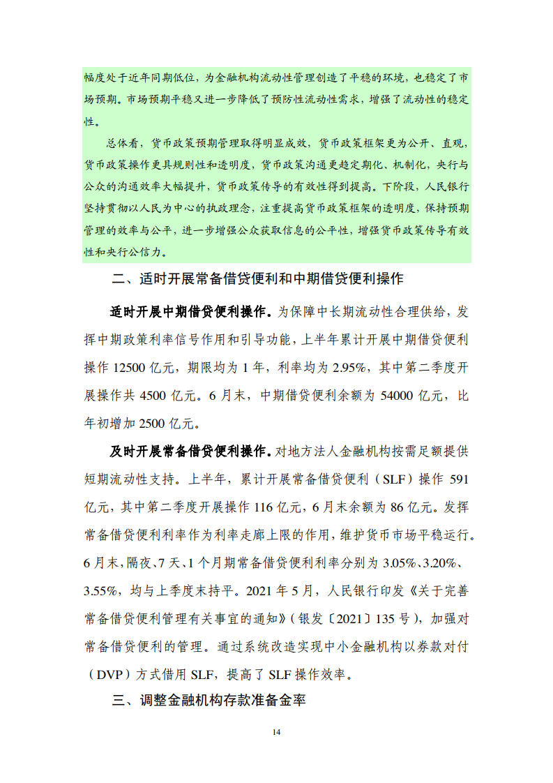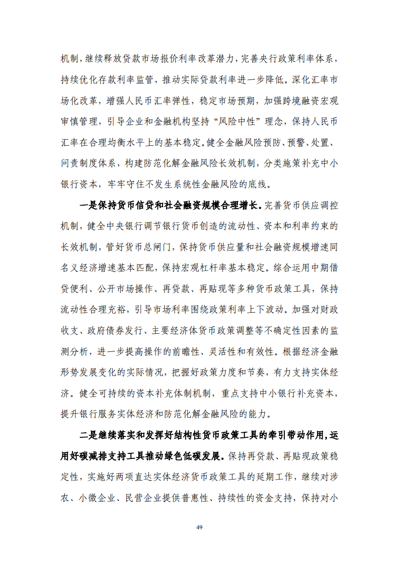 一是保持流动性合理充裕。综合运用降准、中期借贷便利、公开 市场操作等多种货币政策工具,灵活精准开展流动性调节,维护市场 预期稳定,引导货币市场利率平稳运行,优化金融机构资金结构。