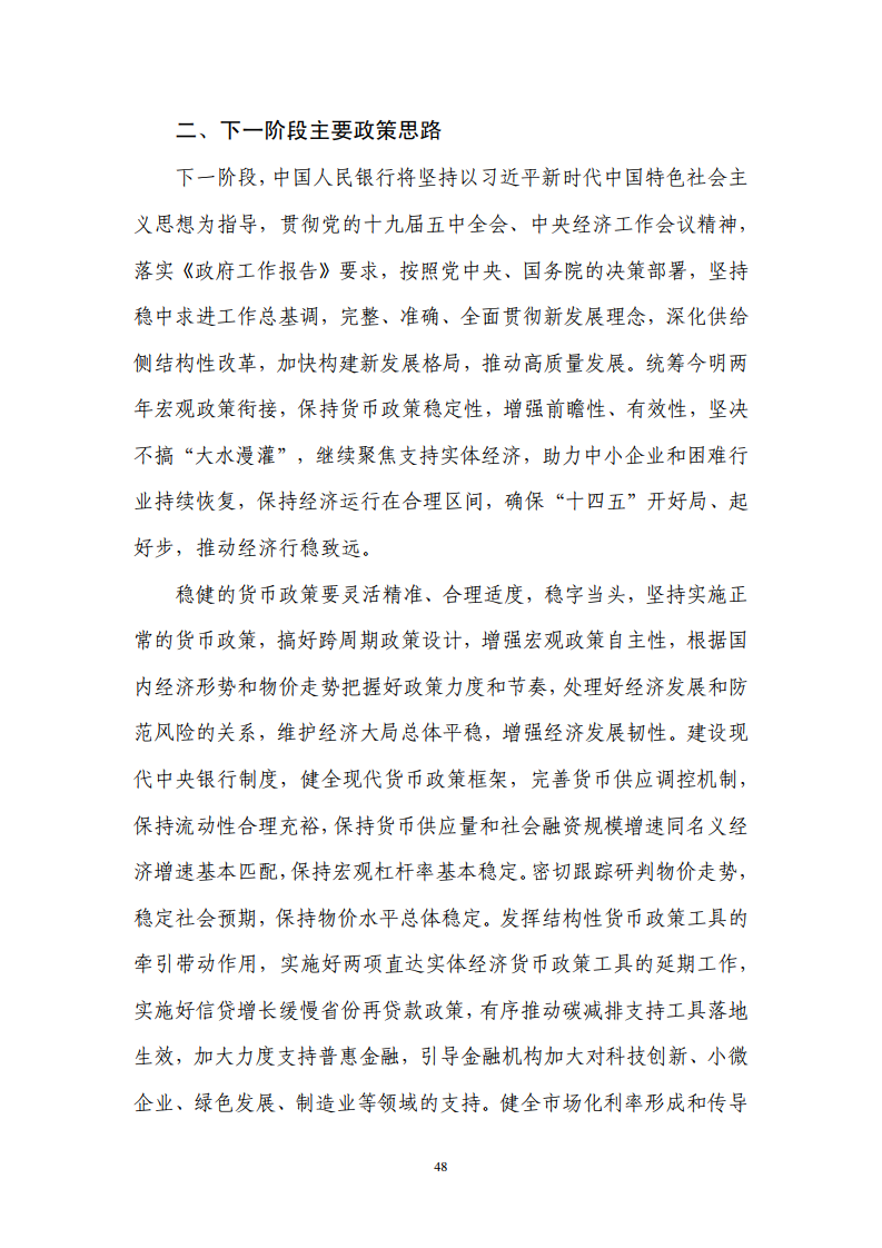 人民银行坚持以习近平新时代中国特色社会主义思想为指导,坚 决贯彻党中央、国务院的决策部署,稳字当头,稳健的货币政策灵活 精准、合理适度,搞好跨周期政策设计,保持了政策连续性、稳定性、 可持续性,科学管理市场预期,坚持服务实体经济,有效防控金融风 险,为经济高质量发展营造了适宜的货币金融环境。