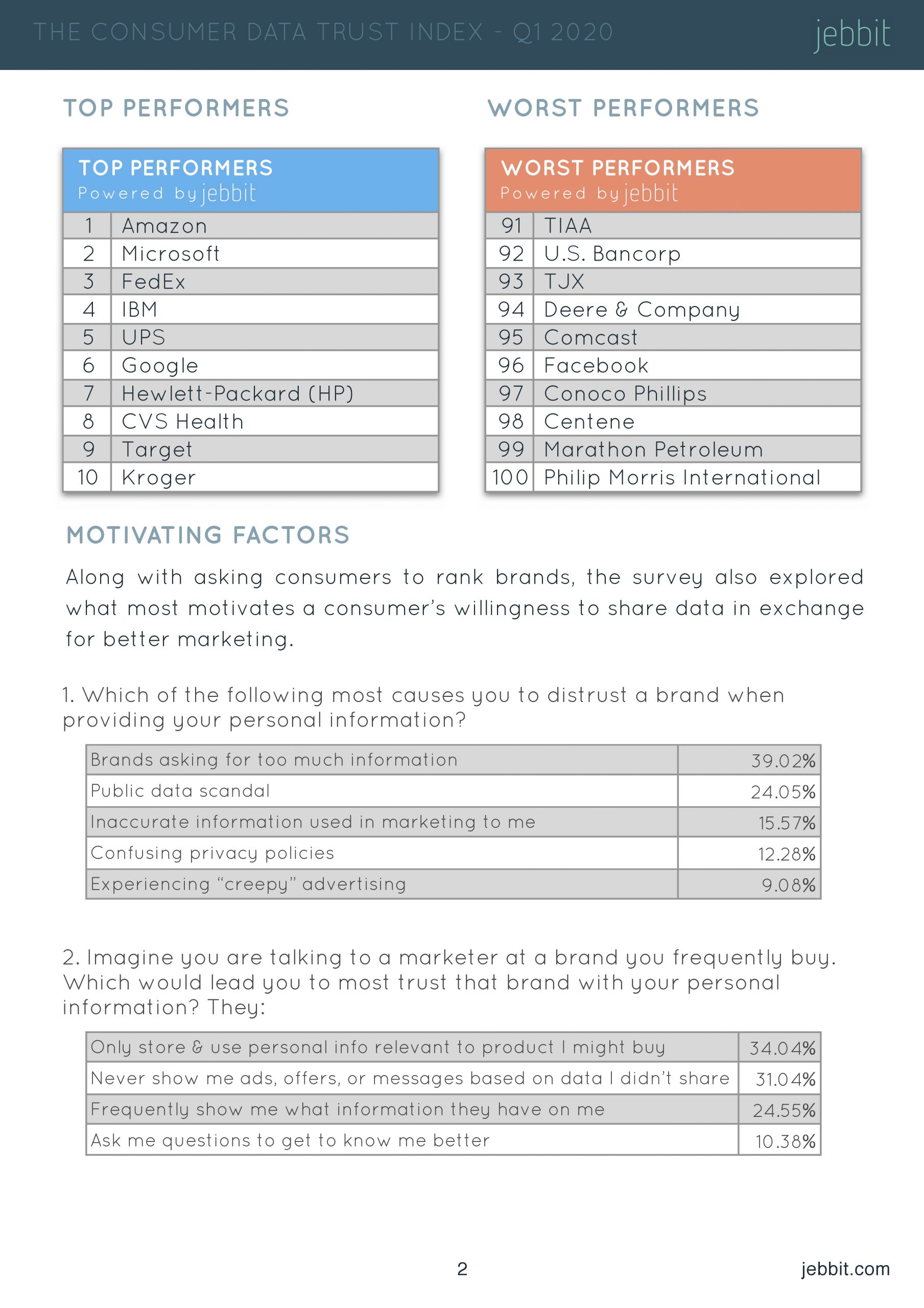 问的太多甚至领先于其他因素,如涉及公共数据丑闻(21%)、经历“令人毛骨悚然”的广告(18%)、混淆隐私政策(15%)和不准确的营销信息(11%)。