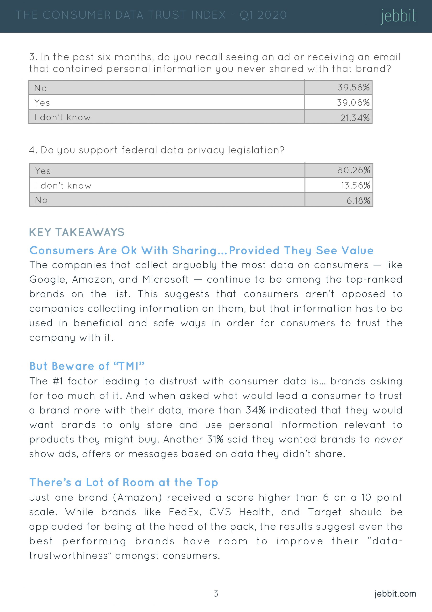 尽管大多数受访者(66%)支持联邦数据隐私立法,但支持率比2020年第一季度的80%有所下降。