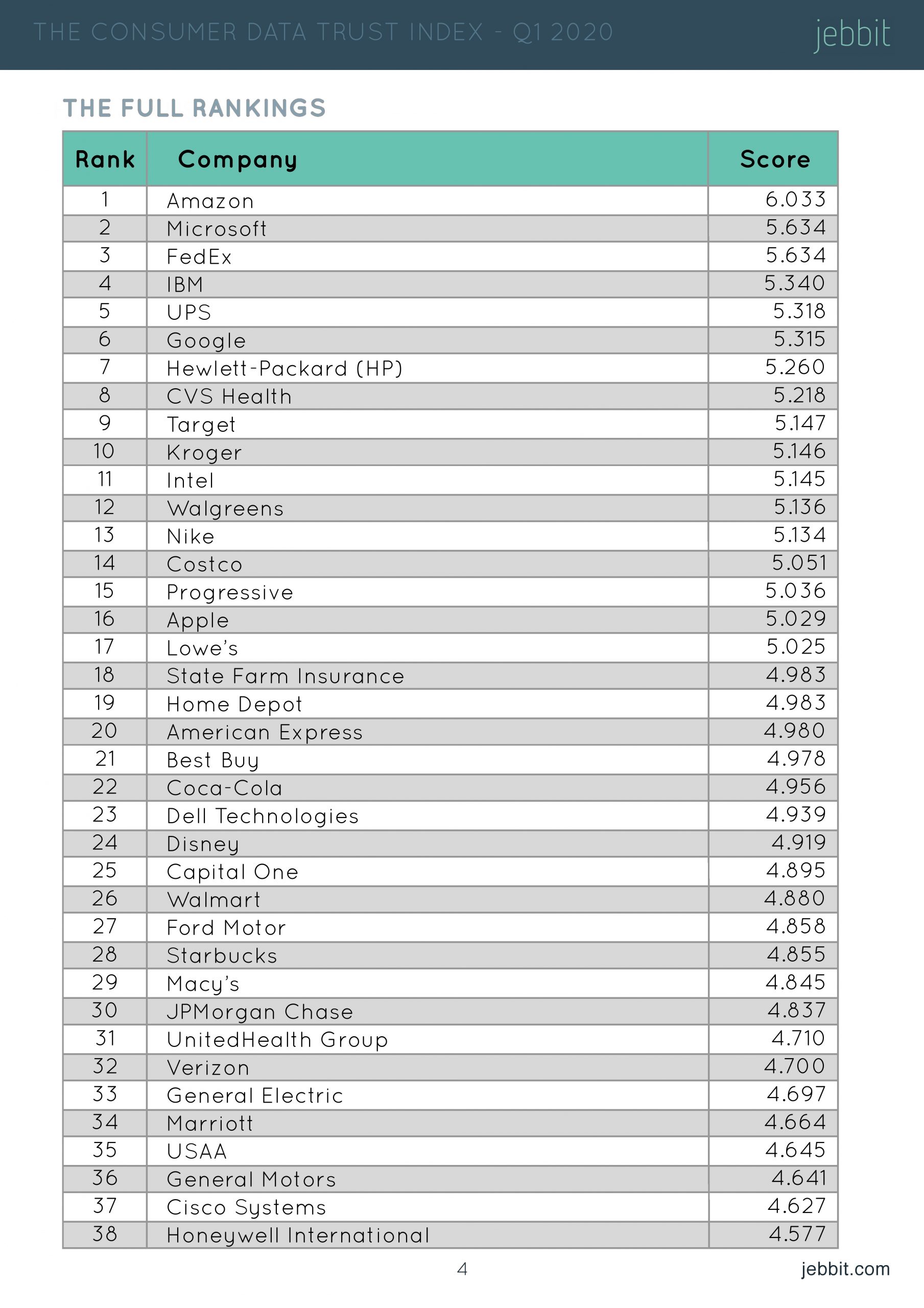 在所有行业中,科技品牌的信任度最高,平均评分为6.52(1-10分,10分为“完全信任”)。最值得信任的五个品牌中有四个是科技品牌,分别是亚马逊(7.05)、Netflix(6.89)、谷歌(6.83)和三星(6.79)。