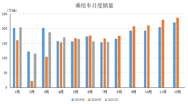 2021 年 1-7 月,乘用车产销分别完成 1139.4 万辆和 1156.0 万辆,同比分别增长 20.1% 和 21.2%,增幅较 1-6 月继续回落 6.7 和 5.8 个百分点。与 2019 年同期相比,产销同比分别下降 1.2% 和 1%,降幅较 1-6 月均收窄 0.4 个百分点。