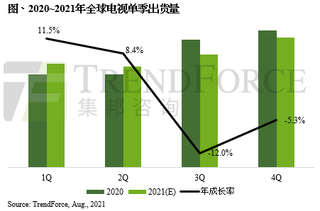 尽管第三季进入传统旺季促销的备货高峰,但今年运输时间因港口堵塞问题进而导致终端上架时间延后3~4周,间接压缩品牌在欧美地区的备货量。由于整机成本上涨、运输时间拉长,旺季促销规模将受到抑制。因此,TrendForce集邦咨询预估,2021年下半年电视出货将年减8.5%,达1.17亿台。