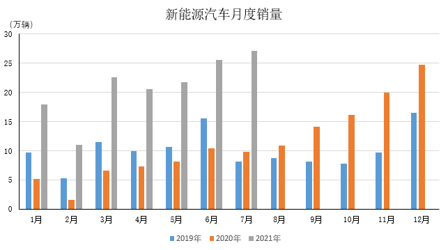2021年1-7月,新能源汽车产销分别达到150.4万辆和147.8万辆,同比增长均为2倍。