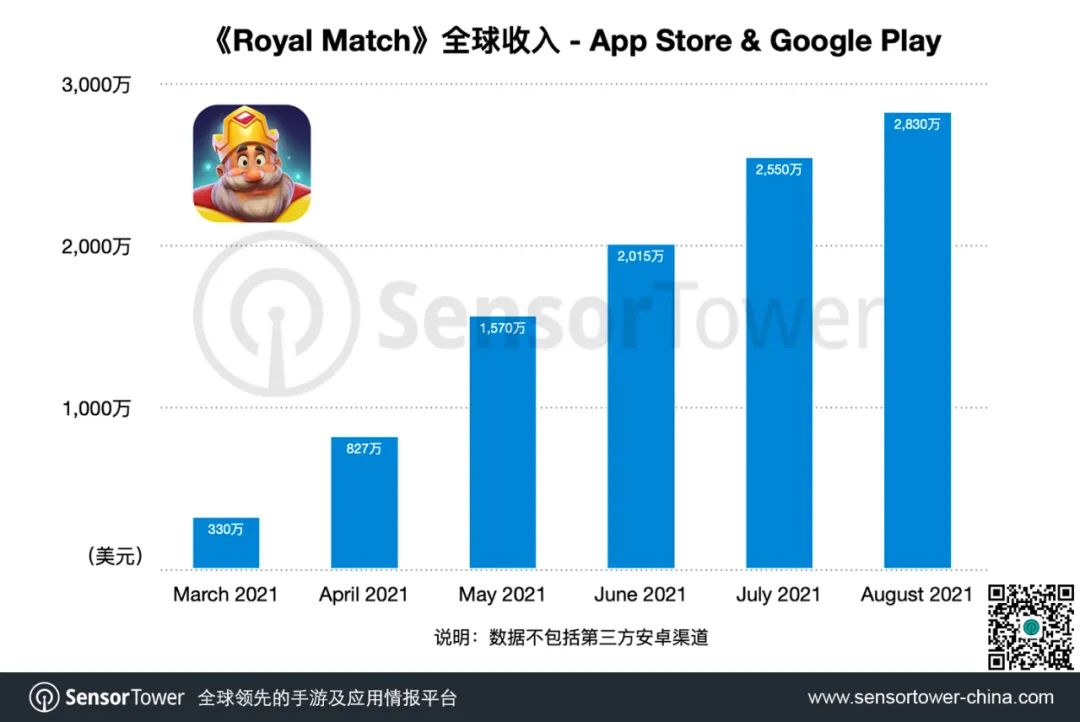 Sensor Tower 游戏分类数据显示,全球App Store和Google Play玩家在Dream Games《Royal Match》上的付费超过1亿美元,使得该游戏成为过去半年收入增长最快的解谜手游。