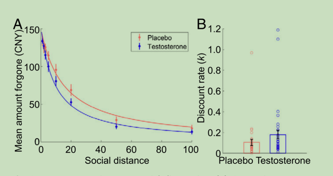 研究结果显示, 无论是睾丸素组还是安慰剂组,参与者对他们关系密切的人的付出大致相同,而且慷慨程度都随着社会距离的增加而降低。但是与安慰剂组参与者相比,那些给予睾丸素的参与者对他们不太亲近的人慷慨度降低。