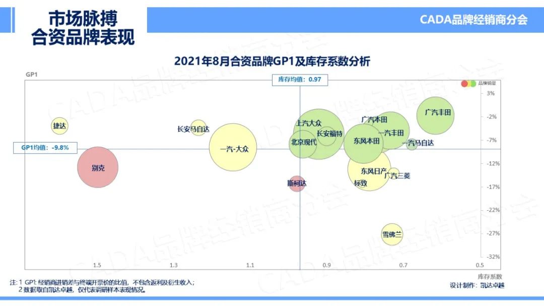 8 月起,全行业整体库存系数全面降低、GP1(裸车进销差)相比上月略有回升,整体均优于去年同期。8 月库存系数仅为 0.95, “缺芯” 现象带来的影响仍在持续。