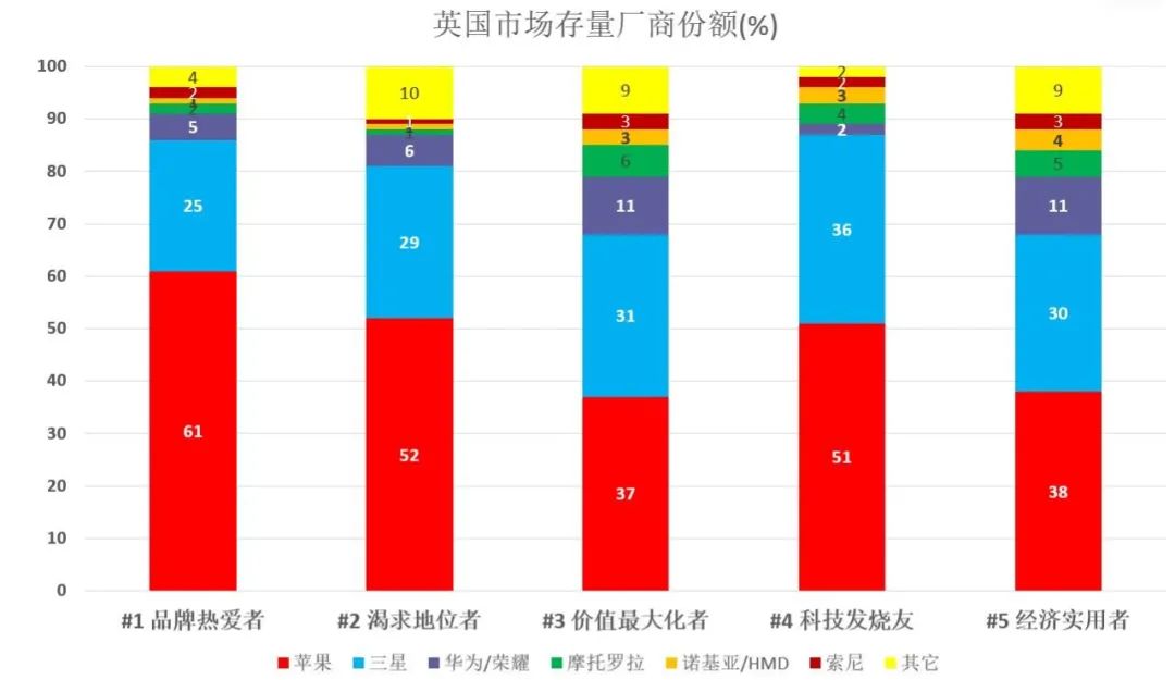 - 华为 /荣耀在英国市场竞争中排名第三,在#3和#5细分群体中具有相对优势,定位为实用、均衡的选择。