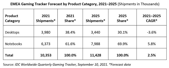 国际数据公司(IDC)在一份新报告中指出:2021 年 2季度,欧洲、中东和非洲(EMEA)地区的游戏 PC 市场继续迎来了稳健的季度增长 —— 同比 +10.8%,出货量达到了 250 万台。预计到 2021 年底的时候,这一长期增长趋势仍将持续。到 2025 年的时候,PC 游戏市场预计将增至 1140 万台,五年复合年增长率(CAGR)为 2.5% 。