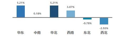 2021 年 8 月,全国六大区中仅东北与西北两个地区环比为负增长,其他区域环比均为正增长。其中华东与华北两个地区增长最为明显,环比均增长了 5.2 个百分点,二手车交易量分别为 51.58 万辆和 19.98 万辆;西南地区环比增长了 3.07%,共交易了 21.12 万辆;中南地区共交易了 38.66 万辆,环比小幅增长 0.18 个百分点。