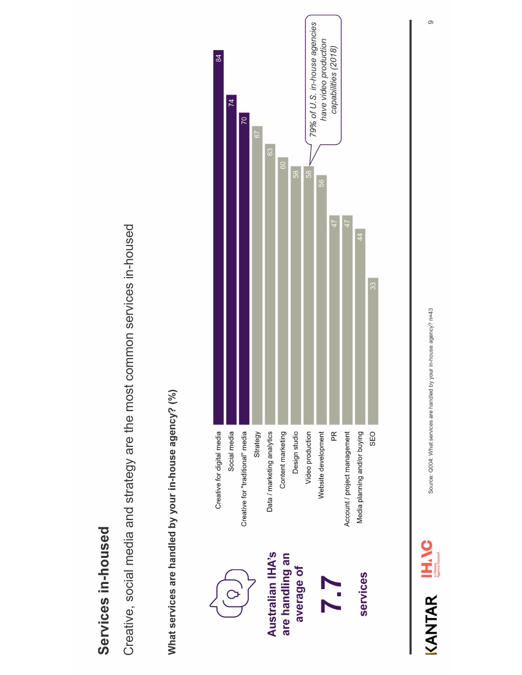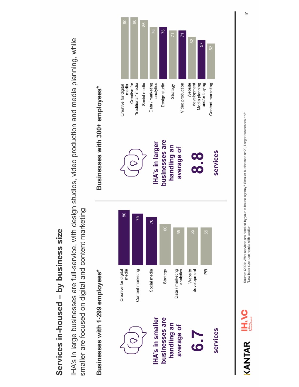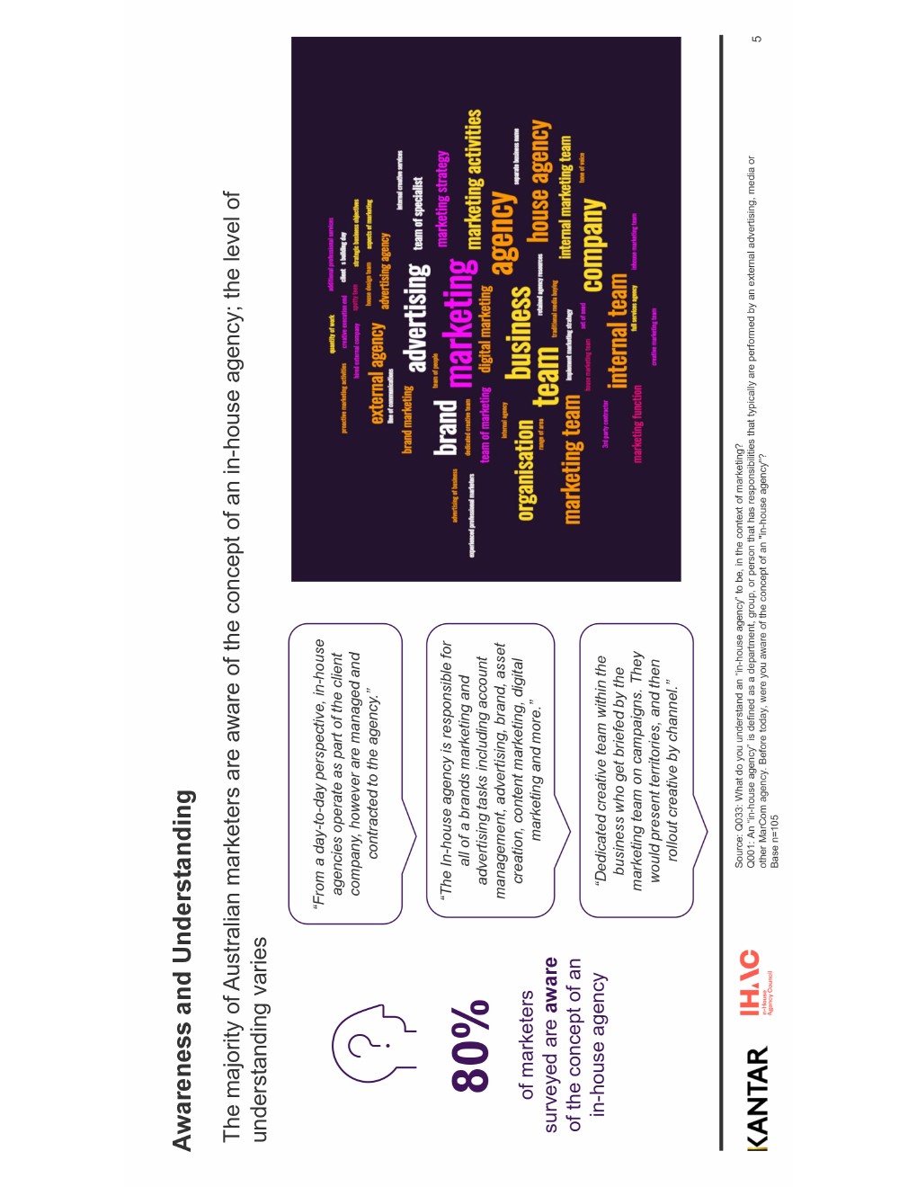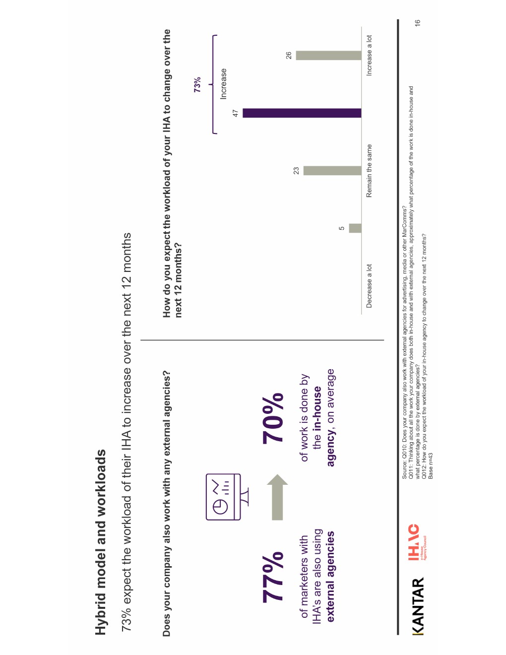 这项针对100多家公司的研究和调查显示,营销内部化的普及率为67%。在没有内部营销的品牌中有14%正在考虑内部化。大部分营销人员知道内部营销机构的概念(80%)。