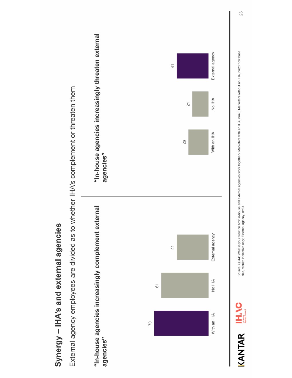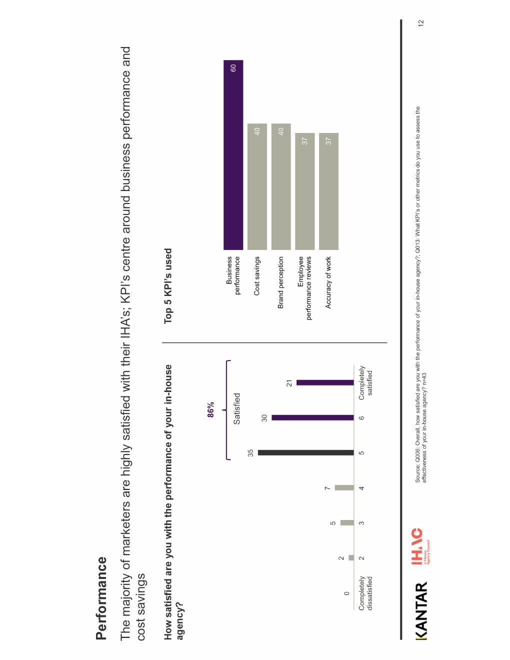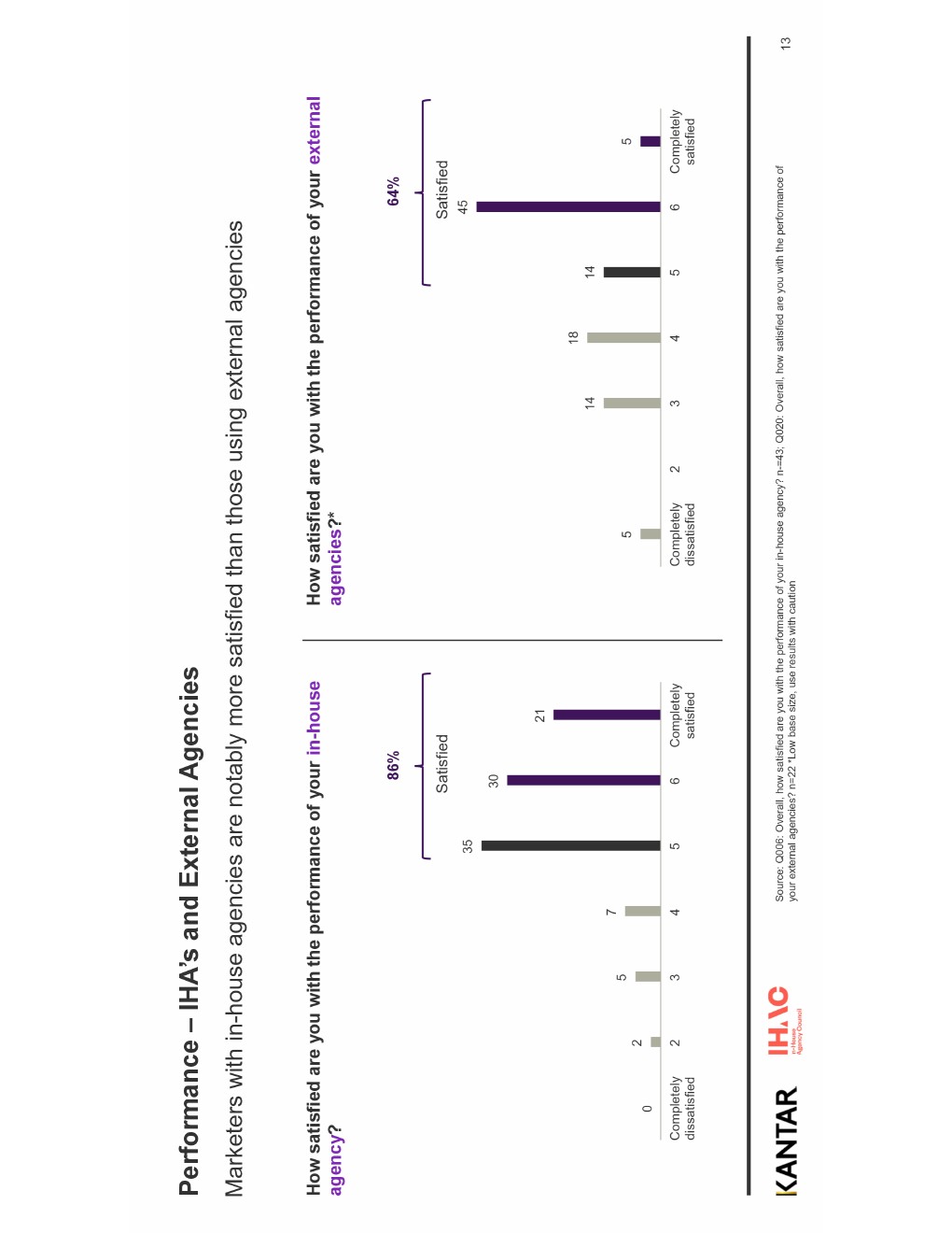 受访者对内部营销机构的表现“完全满意”的可能性(21%)是外部代理机构(5%)的四倍。
