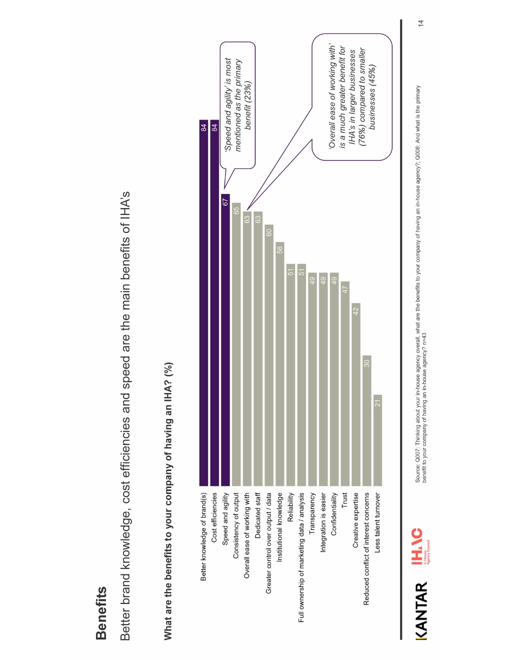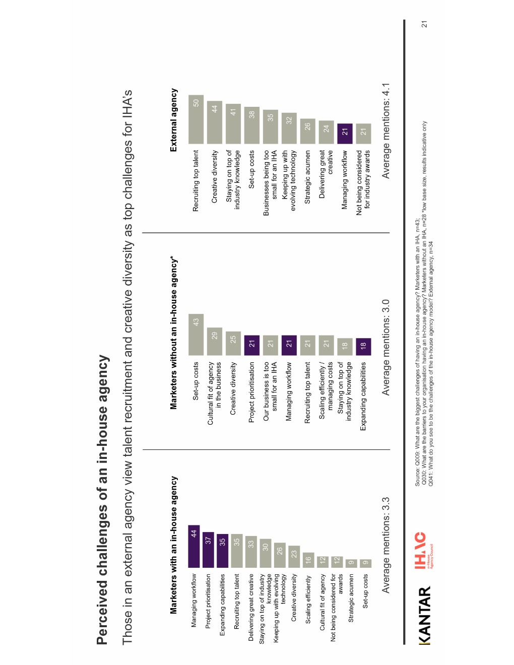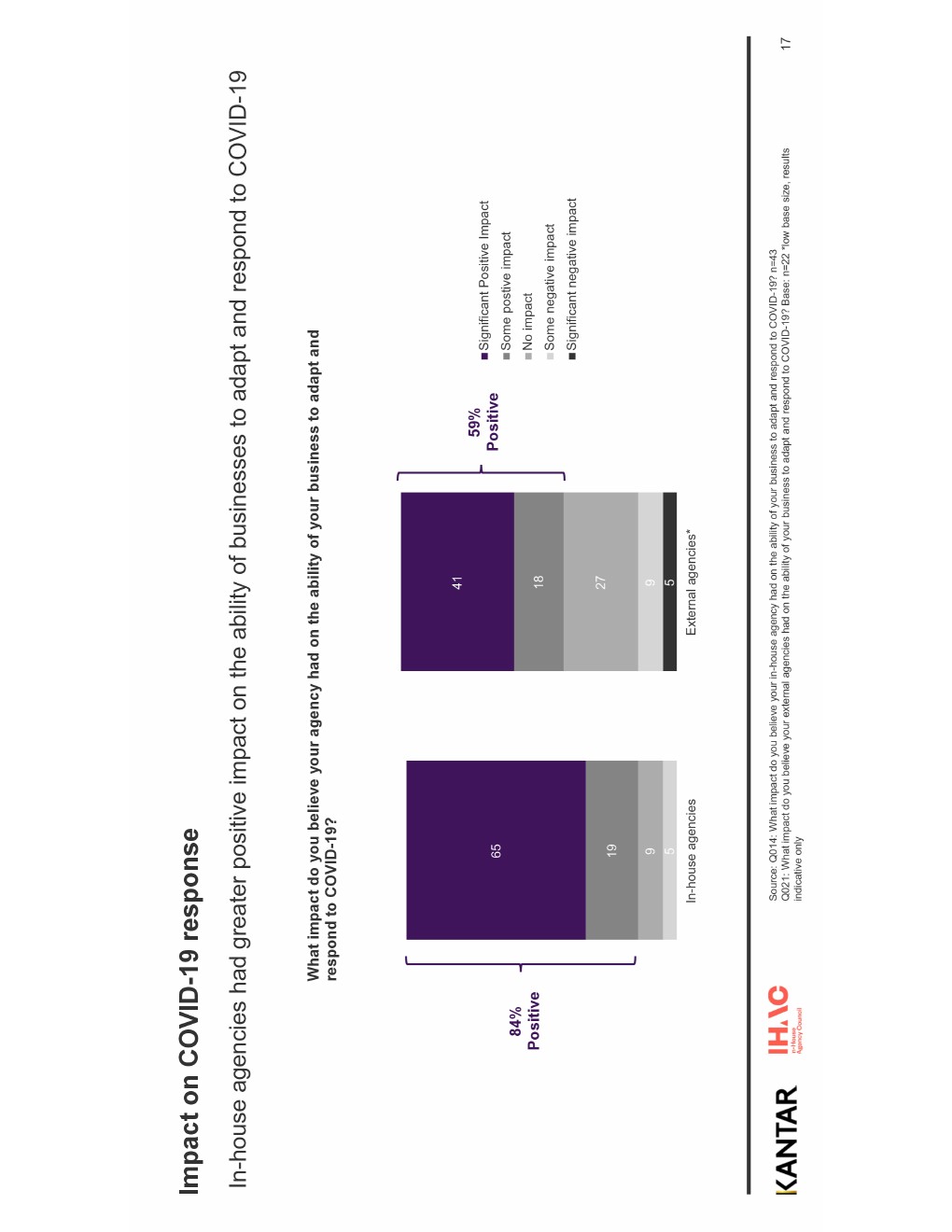 受访者对内部营销机构的表现“完全满意”的可能性(21%)是外部代理机构(5%)的四倍。