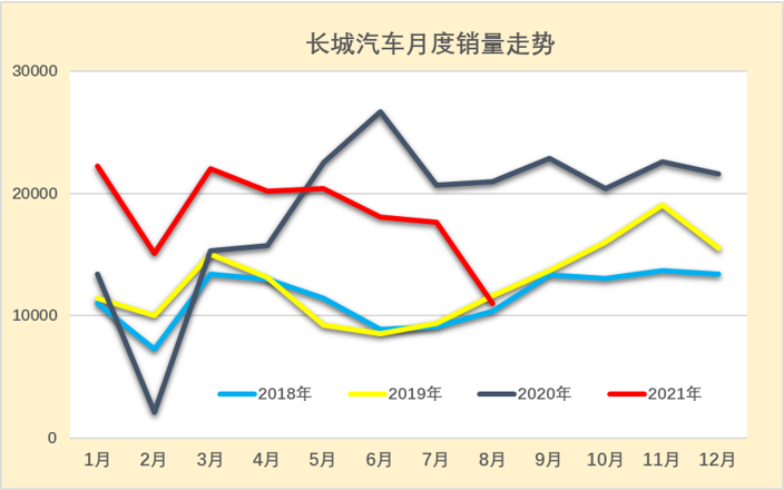 2021 年 5-8 月长城汽车皮卡的走势仍是保持平稳较强,同比增幅因基数而调整幅度较大。