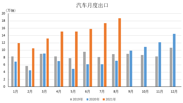 中国汽车工业协会:2021年1-8月中国汽车企业出口118.9万辆 同比增长1.3倍 据中国汽车工业协会统计分析,2021 年 8 月,汽车出口继续保持高速增长,单月出口量再创新高。其中本月新能源汽车出口增长贡献度为 35.2%。 2021 年 8 月,汽车企业出口 18.7 万辆,环比增长 7.5%,同比增长 1.6 倍。 2021 年 1-8 月,汽车企业出口 118.9 万辆,同比增长 1.3 倍。 2021 年 8 月,乘用车本月出口 15.4 万辆,环比增长 10.3%,同比增长 1.9 倍。 2021 年 1-8 月,乘用车出口 92.4 万辆,同比增长 1.4 倍。 2021 年 8 月,商用车出口 3.3 万辆,环比下降 4.0%,同比增长 85.7%。 2021 年 1-8 月,商用车出口 26.5 万辆,同比增长 99.4%。 更多阅读:中国汽车工业协会:2023年Q1国内汽车企业出口99.4万辆 同比增长70%中国汽车工业协会:2023年1-2月我国汽车商品出口金额前十国情况简析中国汽车工业协会:2022年3月前十位轿车品牌销量排名中国汽车工业协会:2021年5月汽车工业运行情况简述中国汽车工业协会:2024年6月乘用车产销情况简析中国汽车工业协会:2022年8月我国汽车商品进出口情况简析中国汽车工业协会: 2023年1-4月重点汽车企业集团销售情况简析中国汽车工业协会:2021年前8月中国品牌乘用车市场份额显著提升中国汽车工业协会:2021年8月乘用车单月产销同比降幅扩大中国汽车工业协会:2022年5月新能源汽车产销情况简析中国汽车工业协会:2024年10月汽车工业经济运行情况中国汽车工业协会: 2023年4月汽车出口情况简析中国汽车工业协会:2021年10月商用车产销情况简析中国汽车工业协会:2021年10月汽车生产企业出口情况简析中国汽车工业协会:2023年7月汽车出口情况简析