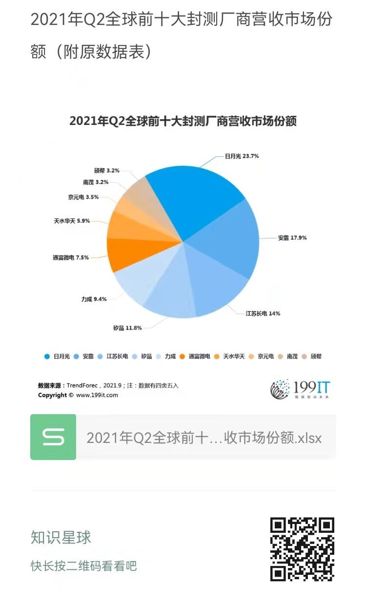 2021年Q2全球前十大封测厂商营收市场份额(附原数据表) ​​​​