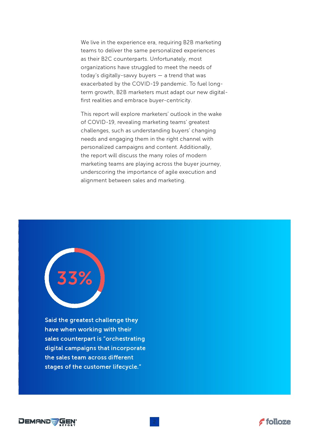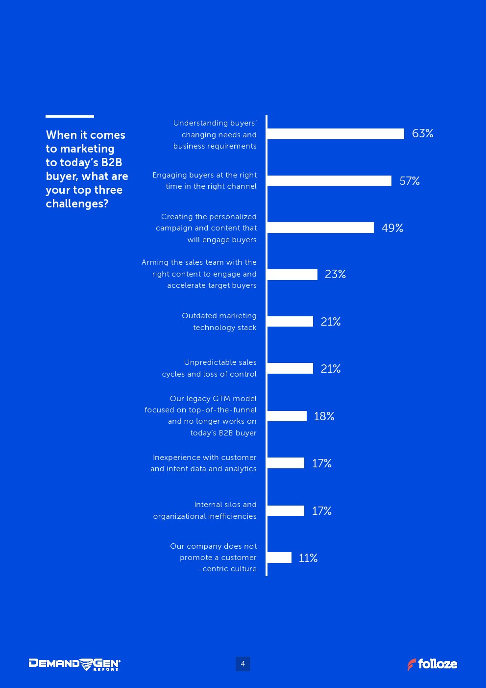 Demand Gen Report和Folloze的调查发现,23%的B2B营销人员表示,用正确的内容武装销售团队以吸引和加速目标买家是他们面临的三大挑战之一。