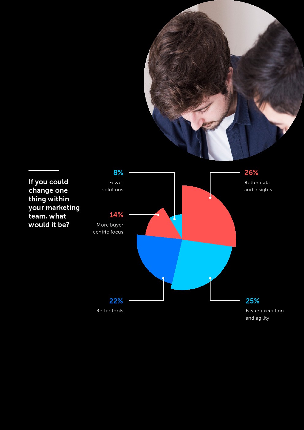 另外,38%的受访者表示,数据质量差(包括第一方和/或第三方数据)是他们面临的三大内部挑战之一。事实上,更好的数据和见解是一件事。26%的受访者表示,如果可能的话,他们会改变营销团队。