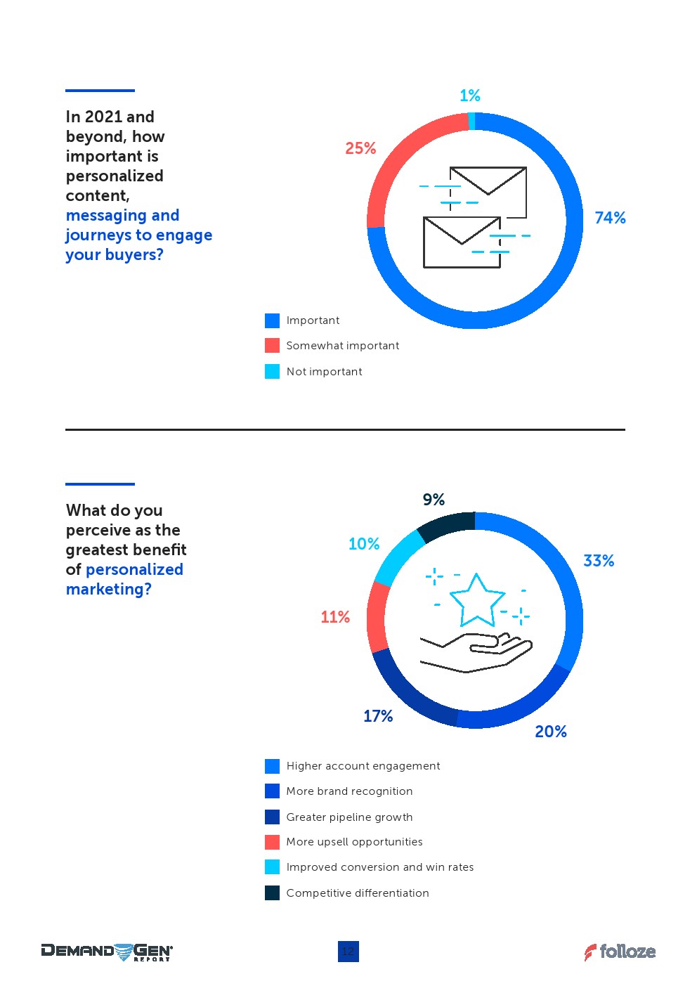 尽管他们在个性化内容方面遇到了挑战,但几乎所有受访者都认为个性化内容、消息传递和旅程对于现在和未来几年吸引买家很重要(74%)或有些重要(25%)。