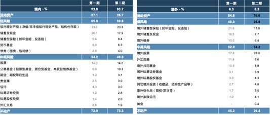 过去6个月,境外流动资产收益和境内相反,境外低风险策略(如储蓄型保险及债券)收益率走弱;股票、共同基金等积极投资策略收益水平明显增强。