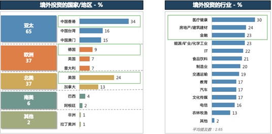 境外投资中,国家/地区方面排名前三为中国香港,美国和德国;热门行业有健康医疗、房地产和金融。香港的跨境资金流动优势使其成为境外投资的主要市场,美国市场的热度来自资本市场的火热表现;境外医疗健康行业因其“硬科技”特质持续受到投资者关注,境外房地产价格快速上涨也带动了投资境外地产相关行业的热情。